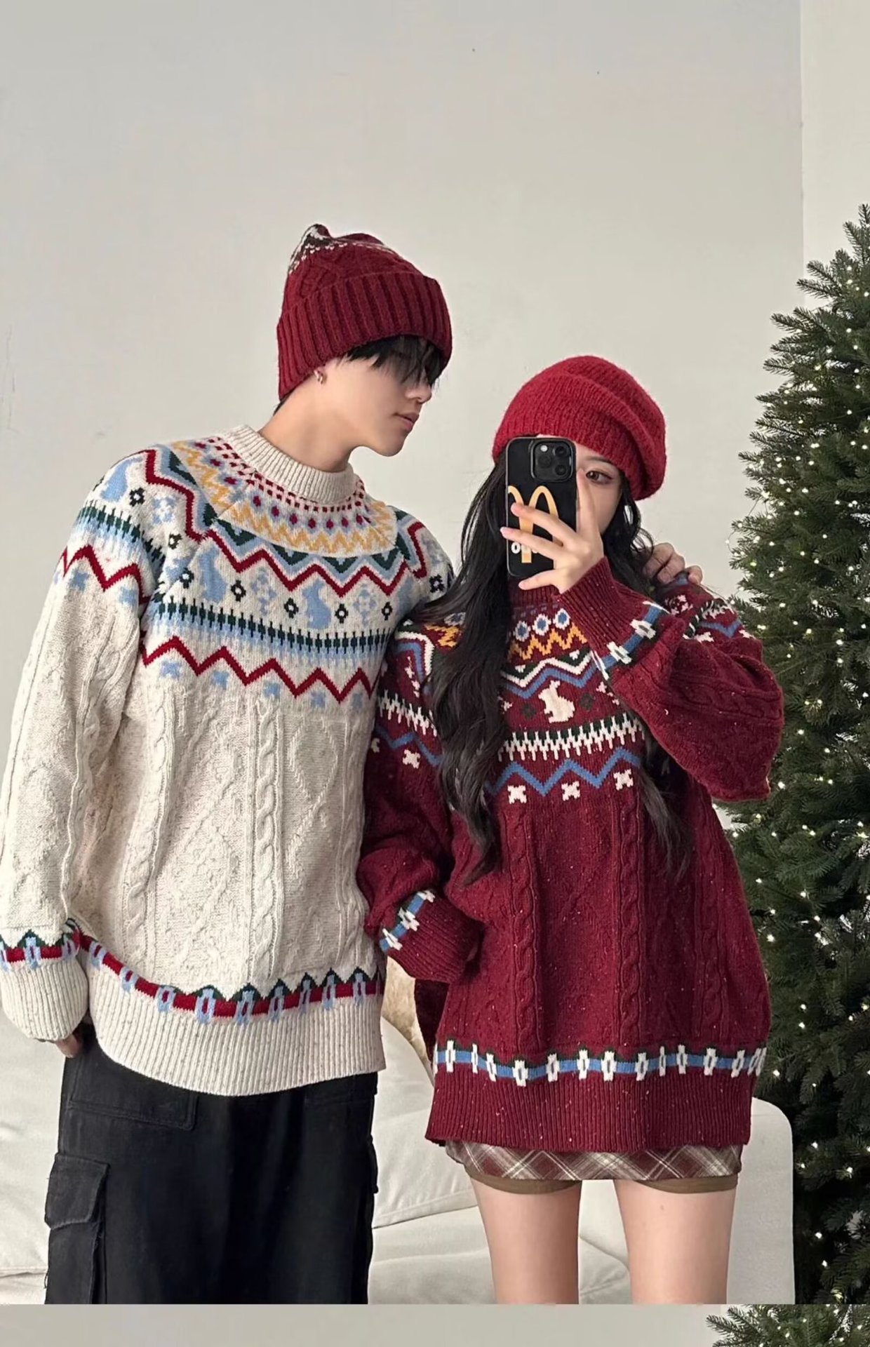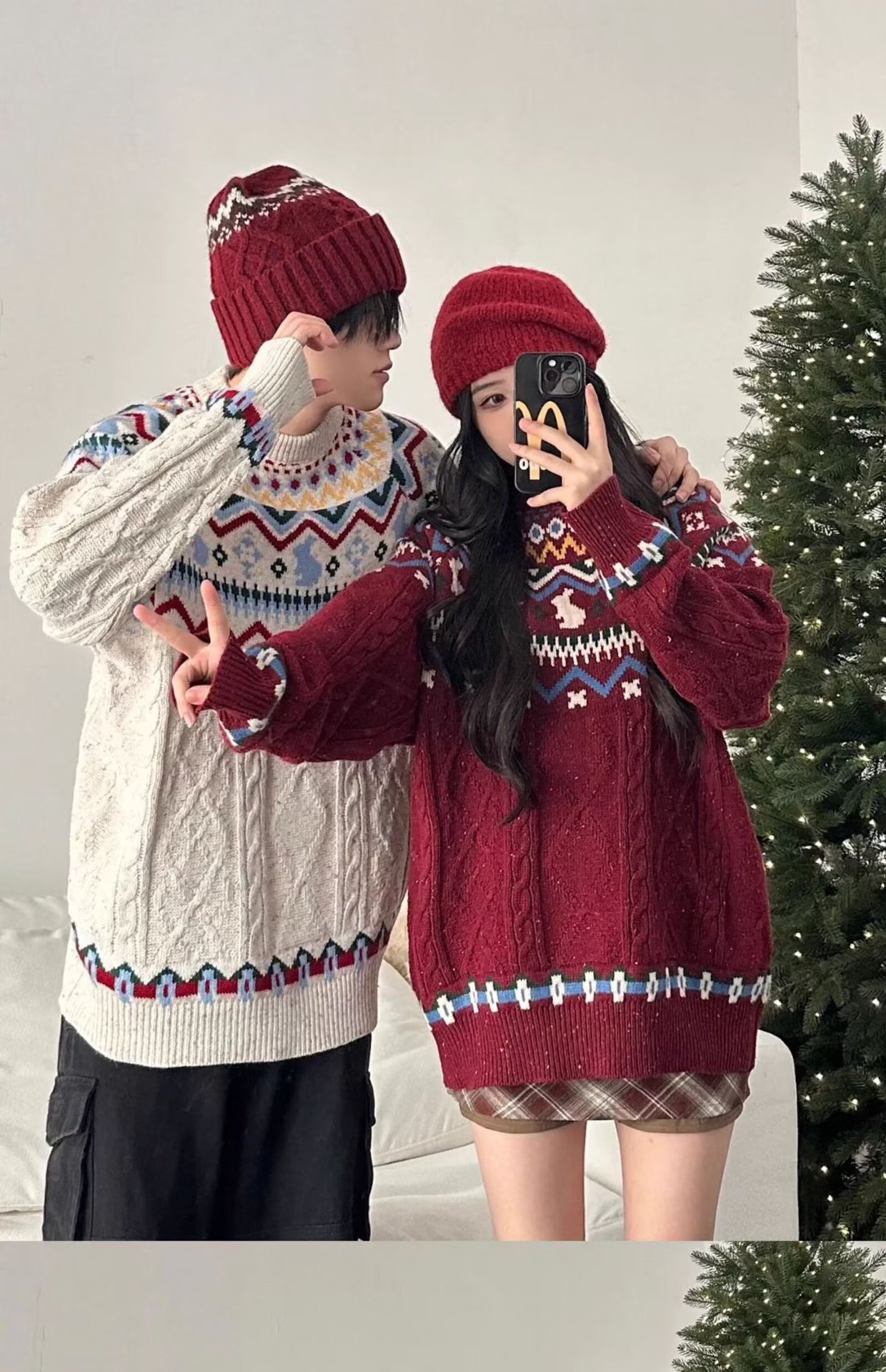 Men's Christmas atmosphere wearing sweaters and sweaters